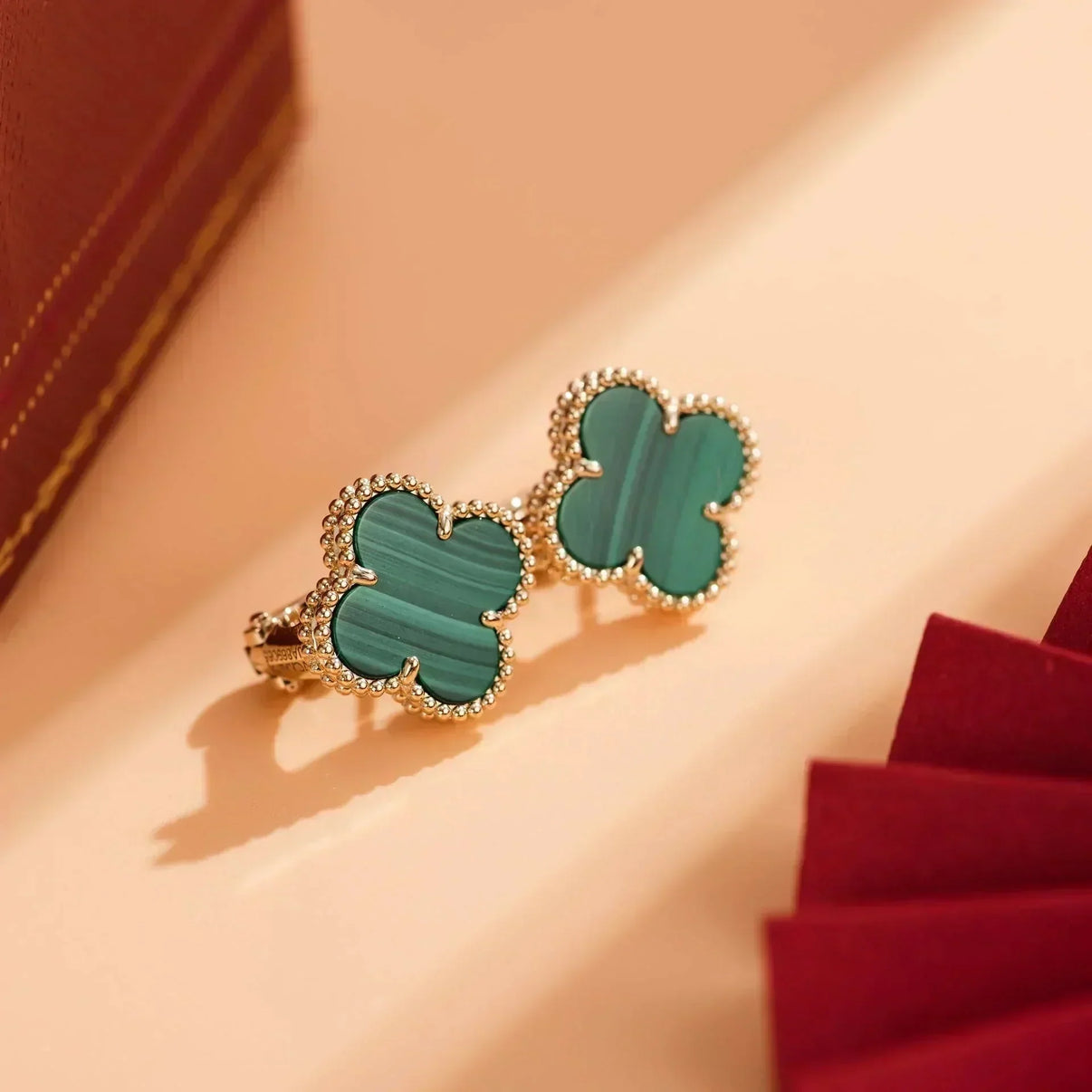 [Amore Jewelry]CLOVER MEDIUM 1 MOTIFS MALACHITE EARRINGS