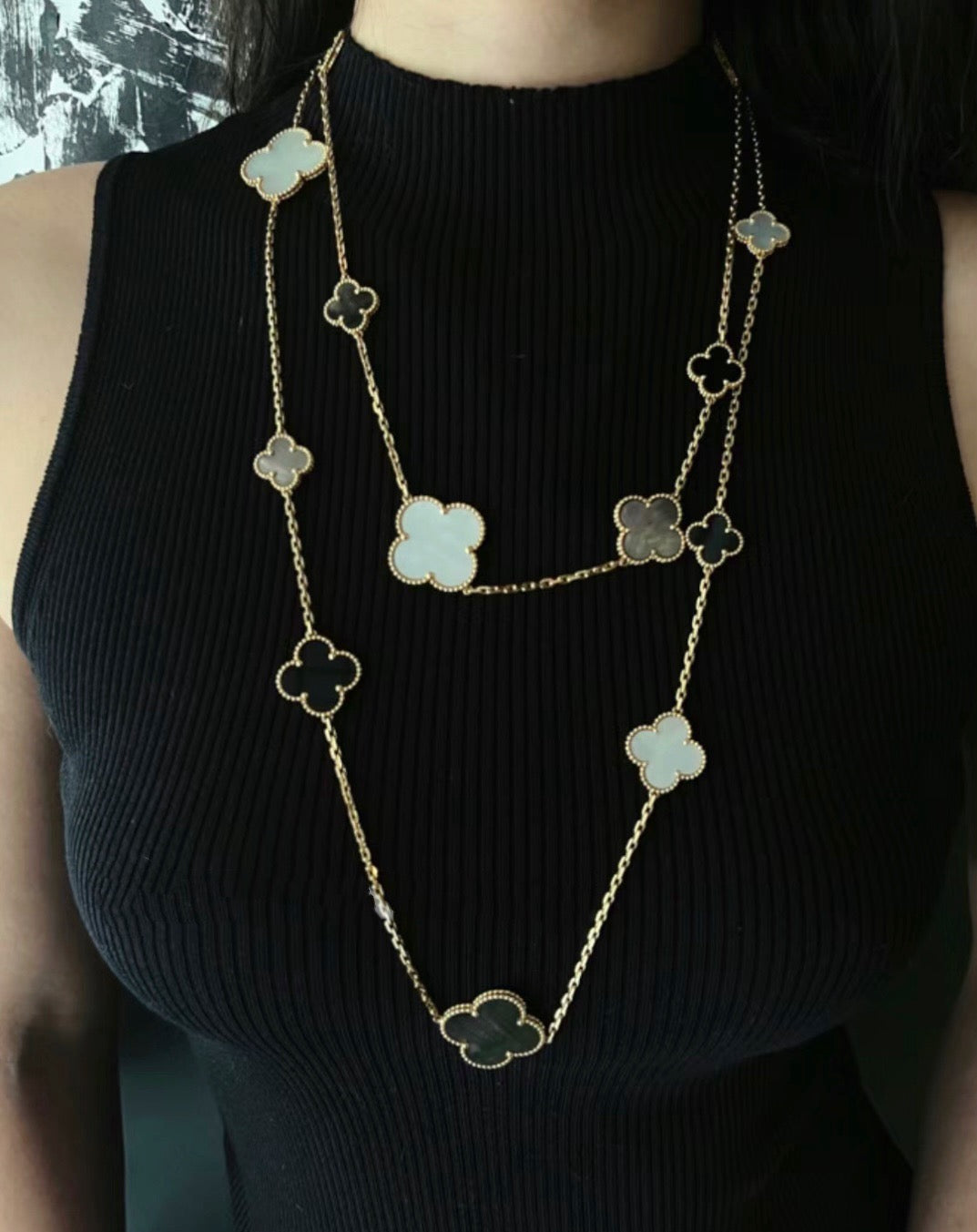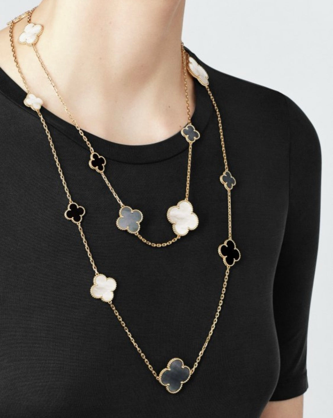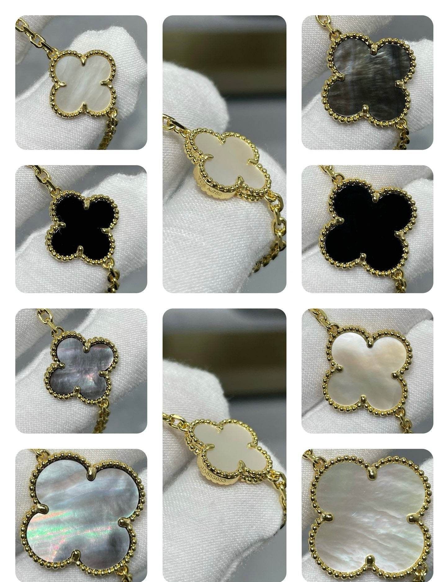[Amore Jewelry]CLOVER 16 MOTIF CHALCEDONY MOP Gold NECKLACE