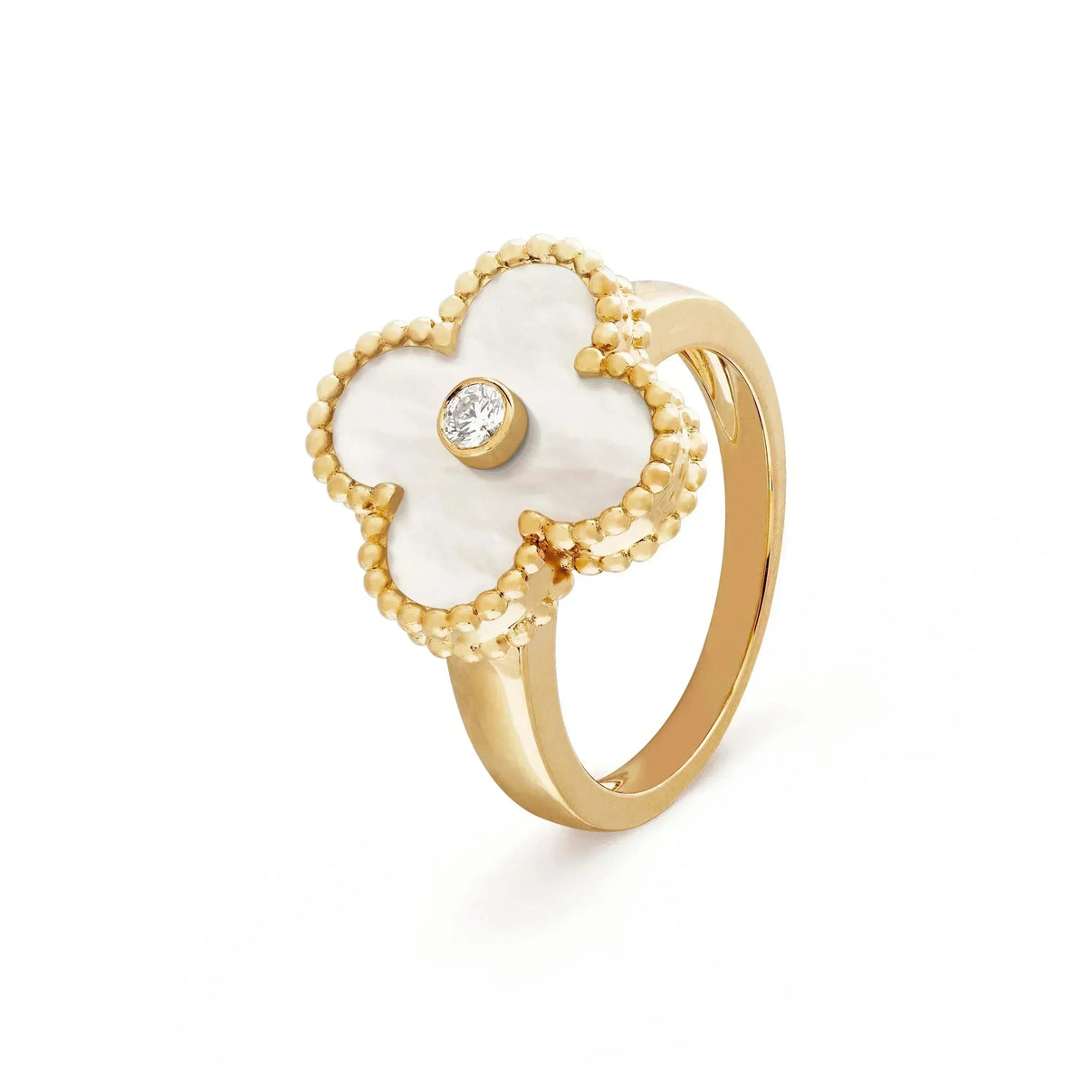 [Amore Jewelry]CLOVER PINK MOP RING GOLD DIAMOND