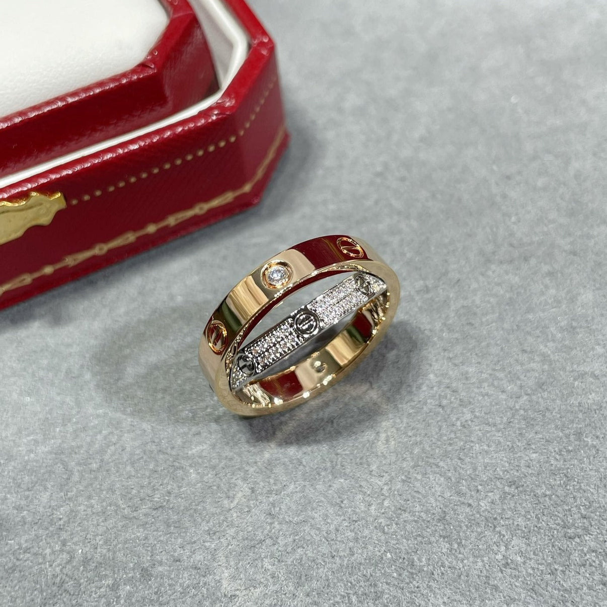 [Amore Jewelry]LOVE PINK GOLD SILVER DIAMOND DOUBLE RING